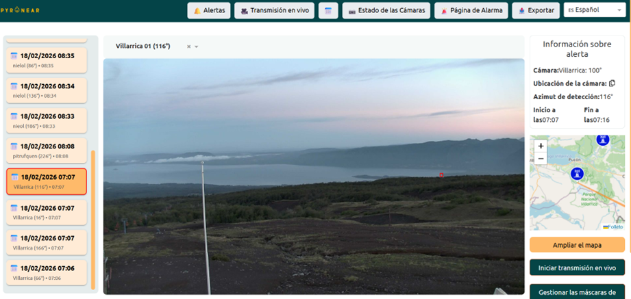 Los dispositivos fueron instalados en el Lov (mall) Pitrufquén, el Centro de Montaña Pillán en el Volcán Villarrica y en el Monumento Nacional Cerro Ñielol. Cada cámara opera de manera continua, capturando imágenes que son procesadas por un sistema especializado entrenado para reconocer patrones asociados al humo. En caso de detectar una anomalía, la plataforma genera una alerta inmediata que permite activar los protocolos de verificación.